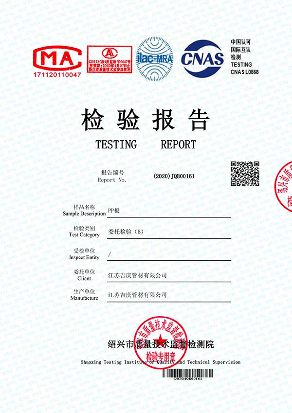江蘇吉慶管材集團有限公司創(chuàng)辦于2010年2月,是pp管,pp管材,pp管件,pp風管,frpp管,frpp管材,pph管,pph管材,pph管件,pph風管,pvdf管,pvdf管材,pp儲罐,pp板材的專業(yè)化生產(chǎn)企業(yè)。公司占地30余畝,擁有各類資產(chǎn)8000余萬元,專業(yè)技術(shù)人員20余人,管材生產(chǎn)線10條,管件生產(chǎn)線11條,具備了10000余噸各類防腐塑料制品的年生產(chǎn)能力。公司通過了ISO9001-2000質(zhì)量體系認證,同時被評為AAA信用單位,2018年公司被評為高新技術(shù)企業(yè),此后陸續(xù)取得安全生產(chǎn)管理證書等榮譽。公司位于水上花園城市----江蘇省揚中市八橋鎮(zhèn)永福路18號,交通便捷,可直接導航至公司園區(qū)內(nèi)。公司全體員工將以高度的敬業(yè)精神,嚴格的質(zhì)量控制理念和科學的管理方法,及時周到的服務,竭力為我國塑料管道在各領(lǐng)域的推廣和應用作出更大的貢獻!